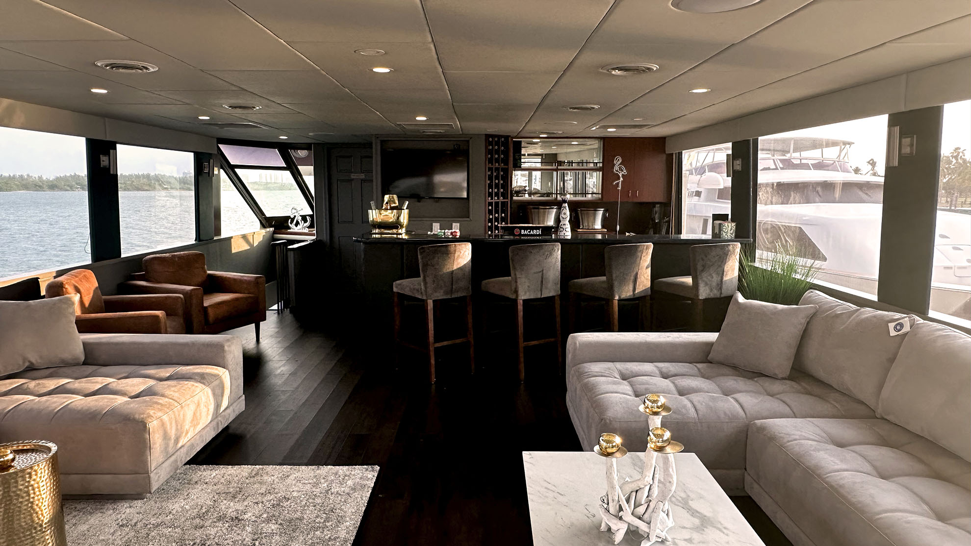 Hearing the muffled hum of conversations and seeing the beauty of walls lined with bourbon, you sink a little lower to take it all in and realize the experience. A 14-panel panoramic view, a crafted cocktail in hand, and good company, will transform this room into magical experiences. Discover some of the best South Florida views with the relaxed freedom of the yachting lifestyle.